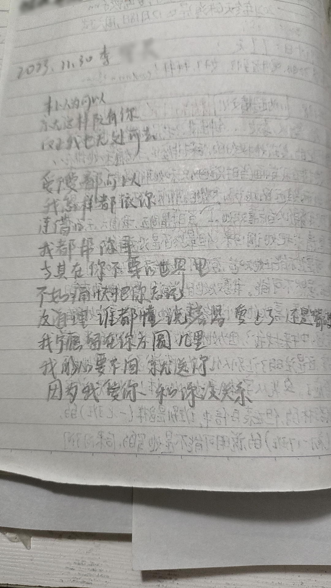 上文是初中同学lzc在我的日记本留下的,似乎是根据薛之谦的某首歌曲歌词改编的。